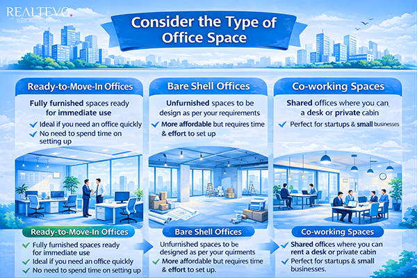 When looking for commercial office spaces for sale in Navi Mumbai, you will come across different types of office spaces. Here are the most common options: